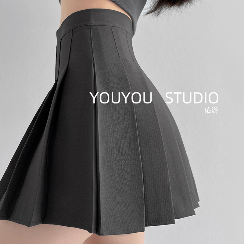 灰色高腰百褶裙女夏季新款显瘦防走光小个子短裙a字jk半身裙子